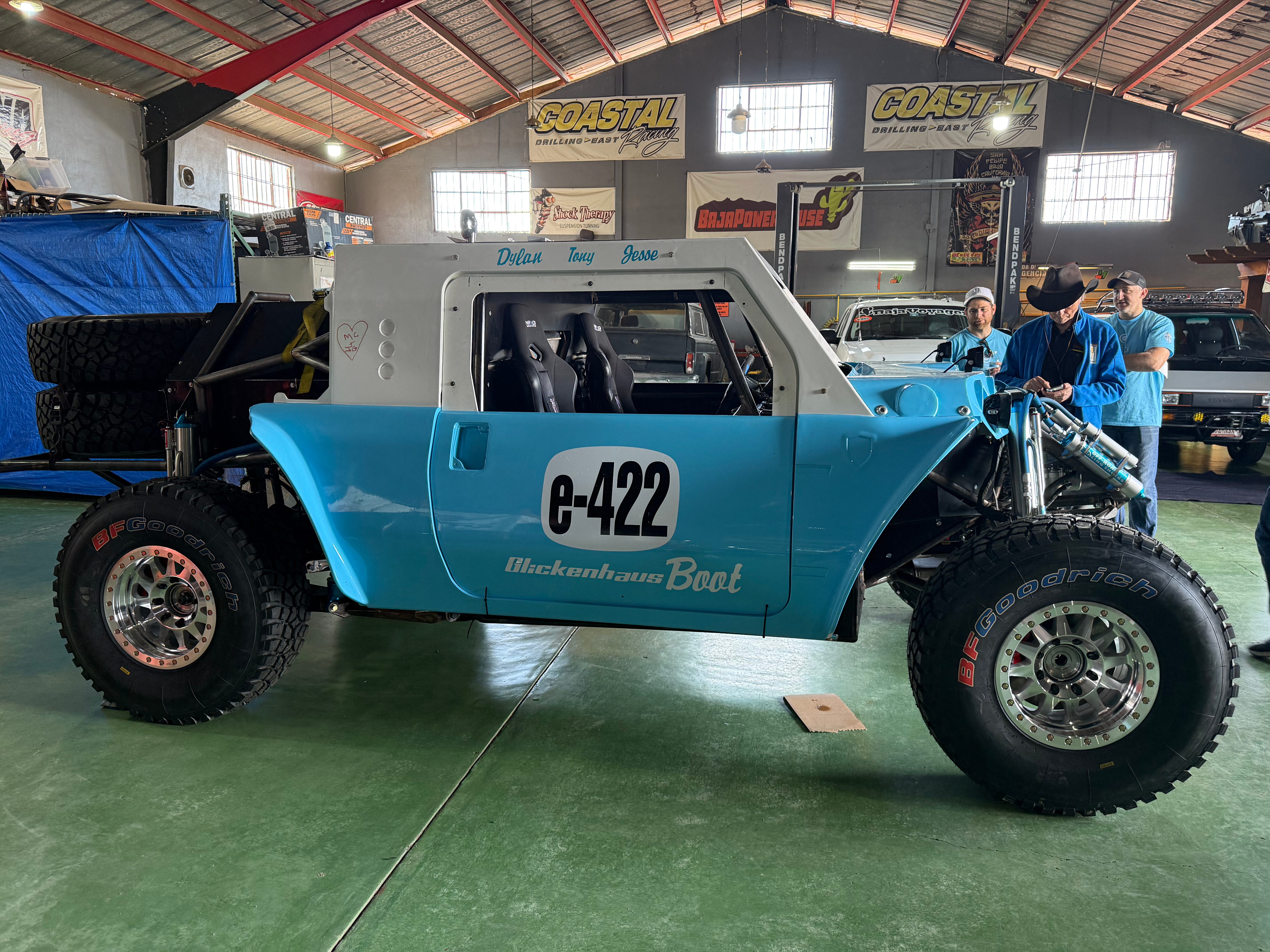The 008 has an LS3 V8 from General Motors in a racy body, jacked up on an off-road platform. Three people sit inside, with the driver amidships. I buckled in to the right of Jesse Glickenhaus, and further to the right of father Jim, on a drive from the Baja Inn to the Baja Powerhouse, a garage bursting with character. The experience felt more akin to being a co-pilot in a Cirrus prop plane than shotgun in a car.